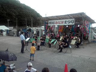 行ってきました! 腰越みなと祭り。 腰越漁業連&市議会プレゼンツ、 腰越民のソウルフルなイベント!! 参加者には景気良くモチを振舞ってます。 調子付いて2皿もいただいちゃいました。 他にもおつまみや軽食の的屋多数。 天王祭と違って漁師の一家が出展しているので、 息子さんが叫んで客引きしたりとか アットホームな雰囲気満載です。 また、価格が一品200~300円と異常に安いです。 まちこんカクテル。 どうみてもそこらのコカコーラに そこらの焼酎を足しただけです! 逆に潔いし、アルコール類が一杯200円と このテのイベントでは激安。 みなと祭りの名物。 周辺サークルや学校クラブによる出し物。 人が集まりギャラリーを形成していきます。 トップは七里ガ浜中学校吹奏楽部。 指揮者先生が生徒達の音を調整しているところ、 黄色のシャツを着たキッズが乱入。 彼こそが腰越のエミネムと呼ばれたミスター・Dだ。通称D・ボウイ。 感極まってシャウト 「そんなのロックじゃねえぜ!」 吹奏楽部にロックを求めるな。 気を取り直して、部員2人による見事なマイクパフォーマンスにはじまり、 オーディエンス達を笑いのうずに誘い込み、幸先の良い演奏開始。 秋に相応しい古今東西の見事な曲をチョイスしたメドレー。 三曲目には、のだめカンタービレの音大オケで見せた パフォーマンスを彷彿とさせる、見事なスイング&スタンドパフォーマンス。 シュトレーゼマンならこう言うだろう 「すばらしいデース」 なかなかにして面白いオケだった。 続いて、腰越野球クラブ・通称ゼット。 70年もの歴史を持つゼットではあるが、 その名称の由来は伝承されず不明となった。 不明と言えば、その昔我らが結成した サバイバルゲームチームKKIも名称の由来は 一部の人間しか知らないし、私もその真相に至っては 墓まで持っていく覚悟がある。 おそらく、同じことなのだろう。 腰越剣道道場、通称・剣友会。 一時期六三四の剣のキャラを使用したポスターで 勧誘をしていたのが印象的。 現在も小学校を拠点に一定の会員数を誇り、 女性剣士も増えつつある。 剣道と言えば、 世の中には信じ難い事が多々ある。 そのトップツーに ゲットマンゲームズで御馴染みのゲットマンが剣道部だったことと、 いよいよレイヤーの彼女を冬コミに動員すると豪語するスシ先生が 剣道部だったことがランクインしている。 きっと二人には違った未来もあったと思うんだ。 出ました! 腰越フットボールクラブ K・F・C 通称ケンタッキーとかニワトリボール部。 祝勝会はもちろんサンダース大佐の店。 その昔、パチスロ実況で一部を魅了したごんざ丸氏が このKFCに所属していた。あの頃はクセッ毛もチャームポイントと 呼べるぐらいの爽やかメンだったが、今やその面影も薄く、 陽気なボブというあだ名が似合いそうなファットマンになり、 趣味はAKB48の追っかけ。腰越の生ける"どうしてこうなった"の例。 ダンスクラブ? 新進気鋭の集団と思われる。 湘南華団。 BGMのイントロが SO FUCK!! SO FUCK!! SO FUCK!! SO FUCK!! という外国人のシャウトが出た時は、どうしたものかと思ったが、 D・ボウイは目を輝かせていました。 その後、三段階にシャツを脱ぎ捨て華麗に舞い、オーディエンスを魅了。 ロッキンな奴らだ、TAIBAN10部ぐらい買い取ってくれねえかな。 腰越フラダンスサークル。 目を疑った。 攻めた 腰越漁業連 攻めの姿勢を見せよった!! ダウンロードは違法になってもおまえらこっちも好きなんだろ? と言わんばかりの肌色っぷり、貝とヒモのブラっぷり。幼○っぷり。 先生をお呼びすべきでした。 曲が終わった後に漁業連の長老が 「アンコールだ、みんなもう一度見てえってよ な!!」 と風早君をも凌ぐ爽やか紳士シャウト。 漁業連が来年も攻めの姿勢を貫くことに期待したい。 おねいさん達のフラダンスもあったよ!! 途中、鎌倉市長の演説開始。 ここでも漁業連は見事なまでに無駄の無い采配を見せる。 演説中は最後のブラスバンドのセッティングと同時進行で まさにローディングタイムに張るゲーム内広告のような扱い。 漁業連シビレルわー トリは鎌倉高校ブラスバンド部。 マイクパフォーマンスに若干の照れが見え、不安なスタートをきるも、 そこはさすがの高校生。音のクオリティは高く、なかなかの統率っぷり。 テキーラ\(^o^)/で盛り上がり、 ラストナンバーはサザンオールスターズ。 天候があやしくなり行く中、大満足のオーディエンス達。 最後は奇跡的に晴れ続いていた午後の天候が一気に崩れ大雨。 終わりは天候が報せた。 いやー、こんなに面白かったっけ?みなと祭り。 明らかに天王祭よりこっちのほうが楽しい。 恐ろしいまでに地域の密接感のあるイベントだった。 しらす利権まぢパネェなあ。 しかも、同時に腰越中学校では文化祭をやってるからね。 そこに中学生連中と父兄のいくらかは取られてるはずなのに この盛り上がり様。 腰越なのに虎の子・腰越ブラスバンド部を動員できないというのは 来