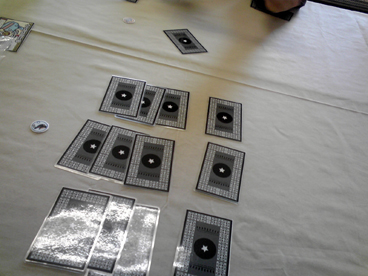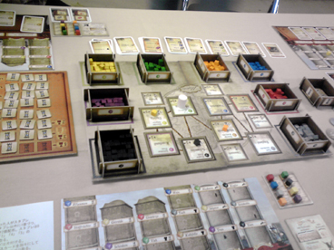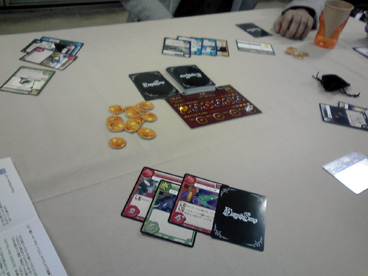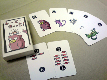 世の中に"先生"の称号持ちは星の数ほどいます。 寝取られ先生 ぷよぷよ先生 ヴァンパイアレイン先生 カタン先生 ファミカセ仕分け先生 モンハン先生 攻略本先生 ジップロック先生 マヨネーズ先生 パチスロ預金先生 軽井沢先生 あやつり人形のアサシンで刺すだけ先生 お弁当箱先生 ハバネロ栽培係り先生 女児向け作品先生 ゲキカラ先生 人喰い酋長先生 ブーンドドド先生 スポーツゲーム先生 麦ちゃん先生 ロリコン(罪)先生 ロリコン(軽)先生 ロリコン(重)先生 ロリコン(病)先生 チキンラーメン枢機卿先生 パスタ原理主義先生 緑のたぬき先生 エースコックジャンキー先生 菓子パンと水先生 マルイ至上主義先生 グロックだけ買い続ける先生 50連マガジンすぐフィールドでなくす先生 FN社先生 トイざらすハンター先生 あみあみ依存生活先生 コノザマ先生 カルチャーブレイン先生 ギラドーガ先生 …などなど 今まで遭遇してきた先生方は恐るべき個性を発揮してきた オンリーワンな存在でしたが、やはり先生は先生止まり でしかないのです。 世の中には「大先生」と呼ばれる、 唯一無比、個にして全の超越した人間が存在するのです。 先生のひとつ上が大先生と思ったら大間違い。 先生方を遥か天空から見下ろす者、 天を取る者こそが大先生なのです。 修練と探求によりなれるのは先生まで。 大先生となるには生まれ持ったナニカが必要不可欠で、 そのナニカが何なのか、凡人である我々には分かりません。 そんな一時代一人現れるか現れないかも分からない 大先生の片鱗を観測したのが、今回のエピソード3。 取り扱うゲームが多いのでそそくさと話を進めることとして、 毎度恒例の調布の某学術機関にて、ボードゲーム会! ショーナンニョロニョロフェスタ愛好会からは、 ショーナン・ヘムレン えーおーあい 参加 ショーナン・スニフ ゲットマン 連絡不備で不参加 ショーナン・フローレン りっちゃん 参加 ショーナン・スナフキン あ~る 仕事のため不参加 2人で参加しにいくこととなった。 機関の一室では、既に一卓で電力会社が全力会社。(街コロだった) それでは、もう一卓で早速テストプレイを行おうということになり、 試作ゲームをテストプレイ。 ■きまぐれ☆予報士(仮) 明日は晴れか?雨か?天候を予想して傘を持っていくか 服を干すかを決めるお天気予想ゲーム。 前回の卓会でも調整が行われ、 今回はカレンダーボードという大掛かりな 追加要素を引っさげて登場。 協力要素とブラフ要素を兼ねそろえたゲームにする予定 であったところ、ブラフ一本に絞る方向にシフトに なったっぽい。 日照り・台風ルールとカレンダーのちょっとしたギミック で確実に面白くなってました。 GM春でショーナンブースから出る予定です! ■謎の組織のゲーム(仮) 世の流れをシミュレートした「経済ゲーム」 赤黒2つの属性の人材を登用し、 状勢により赤黒に対応した悪評がプールされ行き、 場合によっては人物を売り出して資金に換えたりする。 秀逸なのは状勢の変化。 これがなかなか覆らないようにできている。 ゆえに、ほぼ状勢には乗っかっていくしかない。 世渡りの上手の重要さと、 世相に反するリスキーさを精密に表現した怪作だった。 テストプレイ卓を囲んだりっちゃんが相当なお気に入りだったらしく、 3回ぐらいリトライリクエストを出してた。 帰り道にふと思いついたけど、 もし、流行に乗った女の子を雇い入れて 悪評が溜まったら追い出すアイドル事務所経営ゲームだったら ドルオタ先生のゲットマンはどう思っただろうか。 ■宇宙で陣取りするゲーム(仮) 宇宙に基地を設置し、縄張りとなる小石を置き繋げて、 マス目に描かれた得点を取り合う宇宙覇権ゲーム。 ボードは4面を組み合わせて使うため、 毎度地形が変わり、勝負どころや展開が異なる。 レっ・・ !! 基本カードプレイで座標を決めて 基地設置してから石の隣接設置を繰り返すだけ。 やることはかなり分かり易い。 がしかし、 とにかくボーナスポイントを取るための 設置場所が重要で、位置取りを誤ると 獲得競争に後れを取ってどえらい事になる。 それは即ち宇宙開拓競争のシビアさを上手く表現してる。 カードの方にも反転効果やボーナスの燃料など 巧に仕込まれてるあたり、抜かりないゲームでした。 ■乾隆後宮 & ウサギの騎士団とペンギンの軍隊 ベータ版はクリスマスまでに彼女を作れなかった ゲットマンさんに不評でしたが、新バージョンはなんとか ゲームになったかなって感じでした まる しばらくドイツ人になってたので、来週から制作トピック 真面目に書きます>< 乾隆後宮の上級ルールにはいおさんの案、 ウサペンのアドバンスドルールにはくむらさんの案 が色濃く反映する予定です。 そのうち正式に一品コラボりたいですねえ。 ここから、GMの注目作品をプレイ開始。 ヤケドしそうなホットなゲームをプレイ! ■みーときゃっち! 出された肉に5種類のパワーが違う動物を当てて バッティングを繰り返すゲ