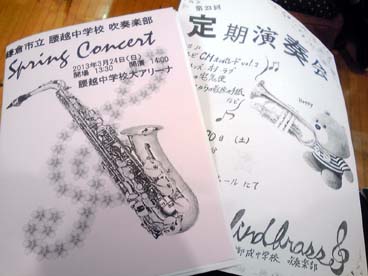 冊子は曲目説明で、プリントは御成中学のコンサート告知でした。
