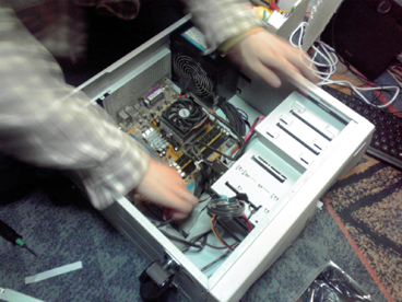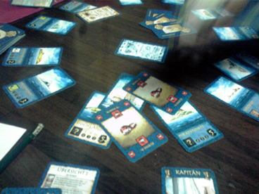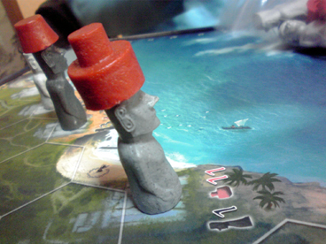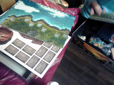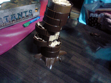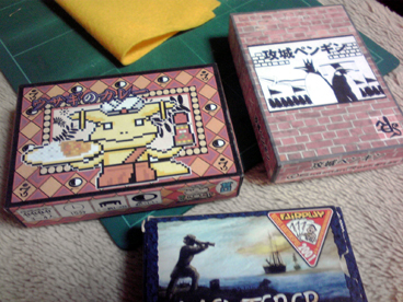 PCスライダー宗博士が組み上げ、 2ボタンボール式マウス・プリンターポートスキャナ・初期型デジ蔵・バンブー他 年季の入った機器を装備したショーナンの駆る超ハイエンドマシン 「E型 MK-3 2008後期型」も時代の波に逆らえず、 老朽化の一途を辿っていた。 このままでは これはイカンと思っていたところ、ラーメン狂の祭典・戸部フェスで 新型フレームと新型エンジンを譲り受け状況が一変。 が、しかし PCスライダースキルはPC98時代から止まっているショーナンには 組み立ては危うく、ここはハイスペック・高ラック・オサレの三拍子 揃った川崎の勇者りっちゃんに期待していたところ 「僕、マックなんですよね キリッ」と一喝され断念。 ハードウェアに強い匂いだけ無駄に発してるゲットマン博士は コスプレギャバクラでアヤナミレイとおしゃべりすることに夢中で そんなことで呼ぶなオーラを醸し出しているため断念。 ソフトウェア開発に転向したとはいえ明らかにその分野に強い ジェンキンス博士ことすえひろは連絡取れず。 どうしたものかと悩んでいたところ、 アンコールワット友の会の帰り際に 「PC組み立てなどBB戦士のようなものでしょうに」 と自信満々に言い放ったその男、皆さんおなじみのイリクンデ・くむら博士。 これは博士の冴え渡る技をご披露していただく他ないと思い、 それから再三に渡り念入りかつ厳密な書状のやり取りにて建造計画の日を 6月2日と定めた。 そして、ついにその日。 当日はホビージャパンガレージセールと重なり、 午前中は博士も彼氏のいお氏とショッピングデート。 ショーナンさんも誘われはしたが、さすがにカプの邪魔はイカンと思い どんなキャキャムフフが展開されているのかを妄想し午後まで待機。 博士が到着すると、早速解体。 ハイパーダッシュモーターを搭載したアバンテのごとく手早い動き。 これはタミヤの前ちゃんも驚愕。 作業の横では、いお氏の戦利品発表会。 今回は「ジャイアンツ」 ドイツゲー然とした大きなボードに 山盛りのコマや専用ダイス。 中でも、モアイのフィギュアコマは逸品で、 それだけで ああ、これは見事なモアイゲーだ と納得してしまうほどのインパクト。 今回は回すまでに至らなかったので、次回でのプレイに期待大。 箱作ってもらっちゃいました><v イリクンデ脅威の技術力。 やっぱり箱はいいすなあ~ いずれ箱を量産する体制を調えたいっ とかなんとかしているうちに、 博士の作業が終わる。 はやっ! 火を入れると、とどこおりなく動作しハードウェアの自動認識がはじまった。 これで超ハイエンドマシンの完成だ! もはやどんな バリバリ動作するぜっ!! このマシンでドイツゲーム大賞を取るぞッ!!おー その無謀な熱気からマシン名は"紫炎のジョロキュア"と命名。 ーマシンの来歴年表ー 2008 宗博士基本設計 2013 電光石火屋台新パーツ提供 イリクンデ組み込み ショーナンが命名 予想を遥かに上回る速さで作業が終わったため 以下ゲーム。 ■ウサギのソムリエ(仮) 来るまでに電車の中で作った。といお氏が語る 驚愕の基本ルール作成。 料理が並べられて行き、良いタイミングでワインを出すゲーム。 確かにタイミングを見計らって出すプレイングはそれっぽい。 もう1味オモシロが入れば完成な気がする。 ■ラミーキューブ 以前からやろうやろうとは思っててなかなか機会に恵まれなかったが、 ついに初プレイ。 オールタイムベストとも名高いため 期待してましたが、いやはや噂に違わぬ面白さ。 今回はタイマーで計って思考時間を制限してプレイしたので、 結構な見落としがあったものの、これはタイマー有りが正解っぽいです。 人数によっては長考したら1ゲーム1時間とかになるんじゃないかな。 とりあえず麻雀より圧倒的に面白いっすわー、一家に一個レベル。 ■ウッドマン 久々に稼動。 打ち込んで倒壊した時のこのインパクトはやはりイイ。 思考より連度というアクションゲームの基本中の基本ながらも、 やはりちょっとづつ慣れて上手くなるというのは楽しい。 BONO! ■バロンポテトの晩餐会 ポテト好きな男爵が主催する晩餐というテーマで 指先を使う早取りゲーム。 その肝となる指先の早取りに関して賛否が分かれたが、 個人的にはこの珍妙なテーマと珍妙なプレイのユニークさが気に入った。 意外と得点方式が秀逸だとも思った。 ■スラムウィッチ これも久しぶりに回した。 自分の山札から1つづつカードを出していき、 同じカードの間に1つはさんでサンドイッチ状態になったら 素早く取るのが基本ルール。ちょっと単純過ぎたかなと思いきや意外と好評。 最近は食い物系ゲームのコレクション&製作を企んでいるので、 こういうゲームを見習って行きたいとおもふ。 ■モイタラ フェレータの後続であやつり系の別派生。 船長と船員になって、あっちこっちの島を渡り積荷を売りさばくゲーム。 表記法が別途なのもあり得点周りの処理がちょっと煩雑に感じたけど、 他は悪くないと感じ