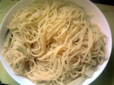 こうなるとほとんど普通の茹でたスパゲティに見える。