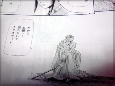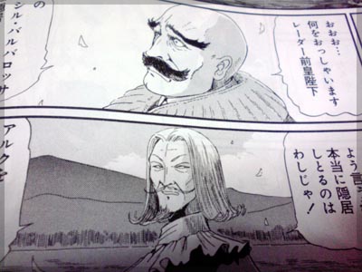 本編も前回のつづき。 剣に手をかけそうなクリスでしたが、フンフトから ダイ・グのイヤリングについて語られ、更なる覚悟を固めます。 もうフンフト無双です。 不倫の末に桜子を産んで詩女を降りた過去があるフンフトだからこそ、 クリスの本音を引き出せたのでしょう。 身の毛がよだつほど設定が生きてきてます。 フンフトが歴代詩女の霊を召喚し、 それぞれクリスに「倒れるな」と激励します。 なんとも意味深な、今後の展開を予見させる言葉も飛び交います。 クリスの受け取る花の種、ダイ・グとの花は咲く、 その時クリスはフィルモアそのものとなる。 デザインズ3のフィルモアゴルゲットを身に着けた クリスを髣髴とさせます。 フィルモアそのものという表現もひっかかります。 ここ数回で、フィルモアそのものと言えば皇女殿下。 彼女に取って代わる展開が今後あるということでしょうか? イリュージョンに圧倒され崩れるクリスをフンフトが抱きしめ、 アクト3終了。 アクト3エピローグ。 フィルモア本国カラミティ星のンビドー海で、 バシル・バルバロッサと前皇帝レーダー8が世間話をしてます。 いやー びっくりびっくり! 前回予想したレーダー前皇帝の再登場がいきなりきた!! ずーっと後かと思ったけど、早い、早いなー。 自分はジークボゥを養子にすると予想しましたが、 まさに斜め上、予想外のクリスを養子に取る展開。 仰天です。 これだからFSSはやめられない。 バシルもレーダーも共にクリスをレーダー家に入れるのは 積極的なれど、互いの思惑は正反対。 更に、フンフトの計略が動いているという、 今回は本当にフンフト尽くしの回であります。 そして皇女茄里登場。 裏切り者の処刑と、穏やかではないことを言い出します。 今回も皇女の顔までは見えず、 金髪と足回りがちょこっと出てお預け状態。 凄く思わせぶりです。パッと出の新キャラなのか、 はたまた意外な正体があるのか・・・ そのファティマ・オディールも登場。 ノイエシルチス"氷"グループとGTMダス・カイザースを持って 裏切り者を自ら追いかけに行きます。 いやはや、凄いエピローグ。 出して回収までのショートネタが最近多目でしたが、 皇女関連は年単位の伏線になりそうな予感。 ここぞってところで広げてきましたねえ。 裏切り者はジークボゥでほぼ確定と思うんですが、 オディールとオデットの関係や、ジークボゥが駆る予定の "皇帝"はこのダス・カイザースなのかどうか気になるところです。 もしジークボゥのGTM"皇帝"がダスカイザースなら、 皇女の退場の可能性が高く、詩女の言葉である クリスがフィルモアそのものとなるにも一致しそう。 問題はジークボゥが何のGTMで迎え撃つのかという点だけど、 これはママンがジーボリショイグーガントで返り討ちにする と予想するけどどうだろう。 更に予想すると連載再開時の パワーバランス表上でグーガントzkwという意味深な ネーミングなので、ミラージュマシン化の予感もするんですが。 ソープ暗躍の予感すらする。 レーダー9の経緯も面白いことになりそうです。 まさかのクリスがレーダー家入りで、予想がいろいろとズレてきました。 ジークボゥがレーダー9なら、ジークもレーダー家の養子になる 可能性もあるわけで、家出中のジークを説得するのが クリスの役目になるのかな? ダイグの遺言とかでジークのことを頼むとか言われるんだろうか。 今のところジークとクリスの関係が繋がってないね。 順当なら同じレーダー家になるはず。 何にしても、この辺りの答えは数年先になりそうだ・・・ 次回からアクト4・ロストマグダル。 ランドアンドスパコーンとヘアード再登場か!?