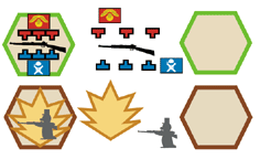 ![]() 最終回はアートワークに関する話。 絵素材を作成するために、大抵図書館とネットで資料を漁ることになるのだが、 戦列ペンギンの場合は既に積み重ねたものが多くあったので比較的資料を漁る 必要はなかった。 ペンギンの種別や特徴に関しては攻城ペンギンの時にこれでもかと調べつくしてあり、 デフォルメドット化はウサギの騎士団とペンギンの軍隊で基礎を固めてあった。 メインに据えるペンギンキャラは少し装備を書き足せば良い程度だった。 なのでキャラは後回しにし、最初に作成したのは背景だったと思う。 ![]() ![]() ![]() ![]() 実はドット打ちで作成した背景はこの4枚だけなのだ。 しかも、これが原寸大。 レイアウト時にこれらを拡大して配置してある。 その際にドットの味を殺すアンチエイリアスがかからないように技術的な工夫が 施されているが、その話は割愛するとしよう。 基本は極小さく作成し、レイアウト時に大胆に引き伸ばす、 これがショーナンアートワークの基本だが、 特にこういった背景素材ならば更に小さなパターンを作成して並べるだけ なので、その労力は想像を絶するほど小さい。ネタが揃えば日に20枚は 容易に作成できることだろう。 ![]() 例えば森の背景の場合は、上の木パターンを並べた上で地面の 凹凸の影が書き加えられてある。 即ち、木1本にだけ全力を注いであるという訳だ。 全体像が脳内にあれば、力の入れ所をセーブしてレイアウトで補うことができる。 そして8ビット16ビットドット絵というものは、相応にしてこの表現が許容される。 この私がドットに傾倒した所以もここにある。 さて、同人ボードゲーム界のドット絵師として名高いショーナンではあるが、 実はドットと並べてもう1つの表現技法を使いこなしている。 それは「ベクター画像」だ 全てドットで打ってるように思われてる節があるが、実は メインに添えるキャラクター以外はほとんど図形データとして作成してある。 ![]() 例えば戦況カードは上の画像のように図形を重ねて作成してある。 全てがベクター図形で構成されているのだ。 若かりし日よりドットと並行してベクター図形の編集も習得したため、 ドローイングソフトで描くより圧倒的に早く・美しく・手軽く作成できるようになった。 これはもう慣れの問題なので、ベクター編集に慣れてない人には 倍の時間が掛かるしめんどうくさいことだろう。 悪食が昂じるとこうなるのだ。 アクションカードのペンギンと背景以外は 全てこの要領で作成されている。カードのフレームも全てだ。 絵はほとんど描いてなく、図形を引き伸ばしたり縮めたり位置を合わせたりする 作業が全体の8割を占めるといっても過言ではない。 ![]() チップもこのように全てベクター図形で作成されている。 イラストチックな爆発の形をしたエフェクトも、全て図形をいぢくりまわして 作成してある。 ここに手書きの要素はなに1つ無い。 次に、ドットのペンギンを解説していこう。 ペンギンはそれぞれ直立姿勢の素体から作成に入る。 これはデジタルゲームのドット絵にも使われる作法だが、 直立テンプレがあれば、多少の書き足しでポーズを付けられる。 ![]() 通常の戦列歩兵隊であるジェンツーペンギンの直立テンプレは 上の画像である。これが原寸大で、このサイズでドット打ち編集が行われる。 「極小さく作って 大きく引き伸ばす」 前述した基本だ。 この時点でオプションであるマスケット銃も打つ。 いきなり持たせないのは まだポーズが確定してないのもあるが、大きさの比較という理由も大きい。 「背丈ほどのマスケット」を実は史実に再現されている。 ![]() ![]() ![]() ![]() そして、いくつかのパターンを打つ。 一見微々たる違いにしか見えないかもしれないが、これを拡大すると その微々たる違いが大きく浮き出る。アクションカードに描かれたペンギンは だいたいこのような行程で打たれ、ベクター図形で作られたフレームの上に 配置されていくのだ。 ![]() イワトビ隊長とフィヨルドランド隊長。 マユゲの逆立ちと体系と目の色合いが若干違う。 持ってる人確認してみてほしい。 前進の方がイワトビ、 イワトビペンギンはアクティブで攻撃的なので前進命令の隊長に当てられた。 ![]() ハシブト騎兵。 動物に動物が乗っているというトンデモ。 ナポレオンハットに洋装っぽい肩当てというコスチュームもかなりキマっているため かなりのお気に入りである。 最後はタイトルロゴ。 ![]() 恐らく今までで一番力を入れたロゴ。 戦列の戦部分に弾丸と歩兵銃、列の部分には大砲と歩兵の足。 ブロックのように上手く組み合わさったショーナン究極のロゴに仕上がった。 ワクワクするデザインだろう? これも全部ベクター図形で構成されている。フリーハンド要素は皆無。 という訳で3回に渡って書きなぐってみた戦列ペンギンデザイナーズノート。 未プレイの人は是非ともプレイしてみてくれ! 自前通販も行っているぞ!! 戦列ペンギン・