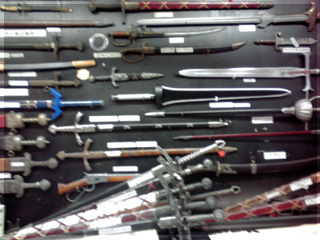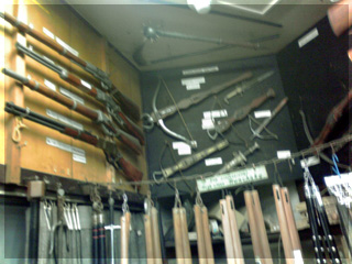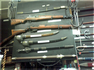 壁一面に物騒なものが飾られてます!!