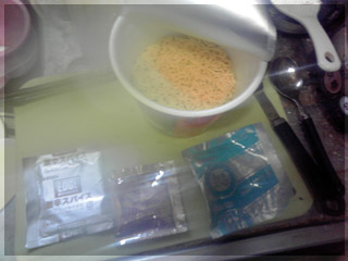 早速、かやくを入れ湯を注ぎ。