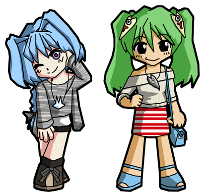 ステータスカードや表紙で使われているしらすちゃんとぴあたんの立ち絵。