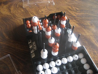 ハナヤマのポータブル版で1戦。見落としが即負けに繋がります。2段目3段目や斜めが盲点。