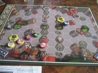 ゲームマーケット2011秋で入手。Lunch Moneyのリメイク、狙い撃ち可能なマルチゲーム。2人戦なので引き運でした。