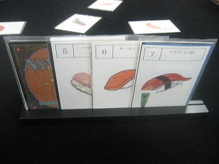 ManifestDestinyさんの開発中ゲームテスト。寿司ネタのセットコレクション。手札ソートと特定ネタの公開ルールで、奪える手札を推測できます。
