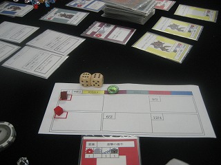 2陣営の正体隠匿ゲーム。不確定な状態で場をひっかきまわしてみても、しっかりゲームになっていました。ルールとメカニクスはほとんど完成、人数設定によるバランス調整が入るようです。