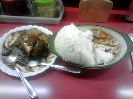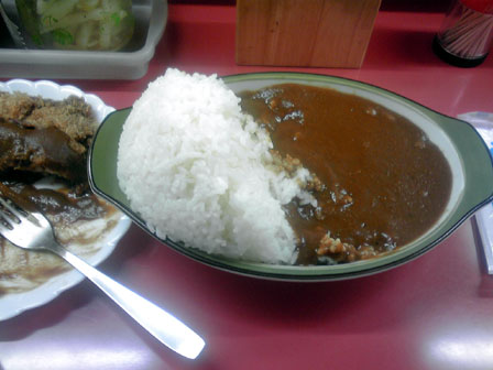 ここまでで、既にコンビニのおにぎり2個分以上+どっぷりルー+ヒレカツ1切れを