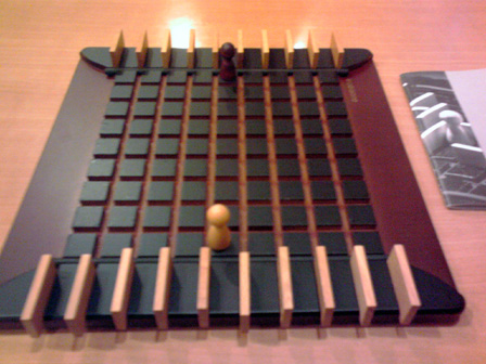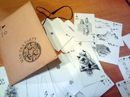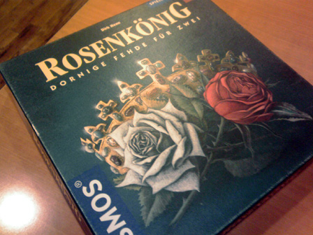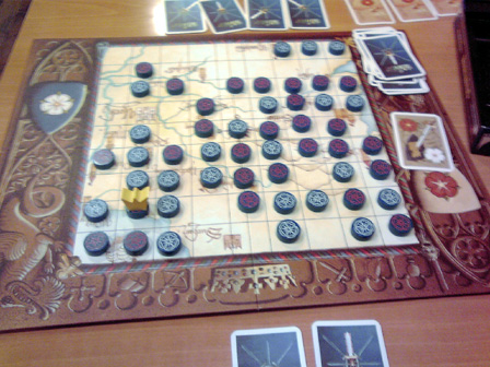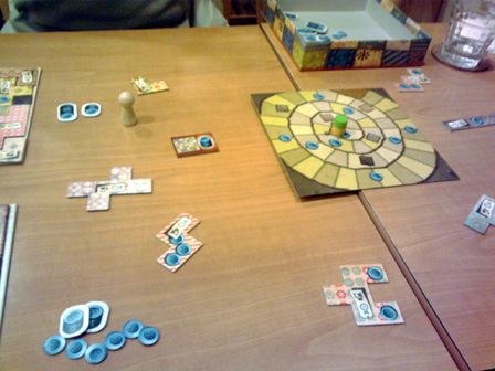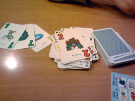 ショーナンちゃんの 「ボドゲカフェ行ってみたいにゃん!」 の一言で先月から計画してました。 ボドゲカフェ巡り第一弾! 記念すべき初回はゲームマーケットの出展でも名高い 立川のペンタメローネさんです。 「ボードゲームいろはにほへと上巻 と みんなのインスト を読んだので わたしも行きたいですー」 と偶然にも、あらかた先生もペンタメローネさんに興味があるとの事で ご同行いただいた。 立川で合流するも、やや時間が早かったので調整にどこかの店に入ることに。 駅中にちょうどサーティワンアイスがあったので、ここで時間調整。 「ショーナンさん甘いもの大丈夫なんですかー?」 「まあなんとか、ただシステムがよくわからんので適当にワタクシに 合いそうなのを見繕ってくれませんか」 と野口秀雄券を一枚渡し委任。 すると なんかきた! 「決め手はどこですか?」 「このスノーマンがミープルっぽいからです!」 なるほど。 そして、とても甘い。 そして、目的地へ向かう一行。 マップ上からなんとなく近い気はしていたが、 物凄く近かった。 ペンタメローネさんに到着!! 先払いシステムなので、ランチメニューのハッシュドビーフをオーダーし座席へ 店内はあちらこちらに書籍やボードゲーム。 暖色の内装と相まっておちつく趣味空間を広がっていました。 私たちはボードゲーム棚横に着席。 ゲムマの話や今考えてる創作本の話で盛り上がってるところへ 早速本日のメニュー到着。 美味い!! 「うめえっ こんな美味いカレー食ったことないぜ!!!」 「ショーナンさん、ハッシュドビーフはカレーちゃいます」 「え、そうなの。 なんか違うとは思ってた」 「どちらかというとシチューです」 「おーおー シチューね、なるほどね、俺シチューと言ったら ハウス食品の白いやつあるじゃん あれぐらいしか食ったことねーわー」 「あ、はいはい ご家庭でよく作るあれですね」 「ハウスっつーとさ、世界名作劇場じゃん?」 「ええ そうですねー セーラとかアンとか若草とか」 「そうっ! 俺さー中~高校生んとき"不幸な目に遭う女の子"属性だったわ」 「えええ そんなカテゴリあるんですか男性向けは」 「うちの業界じゃ知れたジャンルよ、守ってあげたくなっちゃう男子の ナイツハートを刺激するうんぬんよ」 「あらー HPピンチになるとかばってくれそうですねー」 「FFだからそれっ!!」 そんな具合に雑談交えて進行する食事。 大変おいしうございました。 お飲み物用のコースターも女将の手作り!! 「どうやってコルクに絵を印刷してるんですか?」 「ハンダゴテでやってます」 一発本番!!! 腹も膨れ雑談も盛りあがり ここからゲームタイム。 ■ギングレオ まずは準備運動。 ルールは9割がたウノでおなじみ、ドラクエグッズ界の定番アイテム。 「兄が留守中こっそりドラクエをプレイしてたで定評がある先生は、 ドラクエのモンスターでは何が好きですか?」 「キラーマシンです!」 「奇遇ですね、私もキラーマシンです」 「キラーマシン2ではなくて圧倒的に1なんです! あの無駄なく殺戮をするために整えられたフォルム、一つ目、 メカニカルな四脚、そして仲間にしたときのロビンって名前!! 大好きです!!!」 あらかた先生のキラーマシン愛は圧倒的であった。 ゲームの合間に更に雑談を重ね、カフェゲーム会ではまったり進行。 今回の先生ご自慢のグッズ。テニプリトレーディングクリアファイル。 いわく 「あと1つ買えば日吉が当たったのに!!!」 ■マッドティーパーティー ペンタメローネ店長がアートワークを手がけた3人用トリックテイキーング! 今回はアートワークについてご本人の解説をお聞きした。 「実は不思議の国のアリスをぜんぜん知らなくて、取り掛かる際に勉強しました」 「不思議の国のアリスと鏡の国のアリスを一緒にしないように ちゃんと不思議の~からの出展で絵の内容を固めています」 「印刷の割安条件との兼ね合いで多少濃度を抑えていますが、 なかなか良く出てます」 こんな具合に店長直々に制作話をお話いただきました!! ■コリドール 次なるはコリドール。 以前から遊んでみたかったアブストラクトゲーム。 木製のコンポーネントが高級感を醸し出しています。 「ルールは、自分のコマを相手側の一番奥にタッチアップさせたら勝ちです。 やることは、コマを前後左右に進めるか壁を1つ置くだけ、 コマ同士は1つ向こう側に飛び越える。以上です」 「わー カンタンですね!」 「やりましょー」 これだけでインストが済んで始められる。凄い、コリドールっ 一戦目 ショーナン勝利 「いいいやぁぁああほぅーーーいっ!!!」 二戦目 あらかた先生勝利 「ちょ、おまっ いぢ悪すぎだろその壁の置き方、畜生の行いやぞーッ!!!」 「フフン♪」 ■ローゼンケーニッヒ 持参した二人用ドイツゲームの定番。 「ルールは、手番が着たらやることは2つに1つ。カードを使用して、 王冠をカード絵の剣の方向へカードの数字分だけ進めて、 自分の色のコマを下に置く。 またはカ