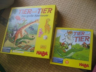 HABAの積み上げアクションゲーム。拡張の動物を混ぜて、基本ルールで。ワニの目が多く、横に広がりました。