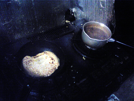 → ひっくり返して焼く → 焼いたナンを皿に移す を何度も繰り返す。