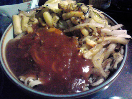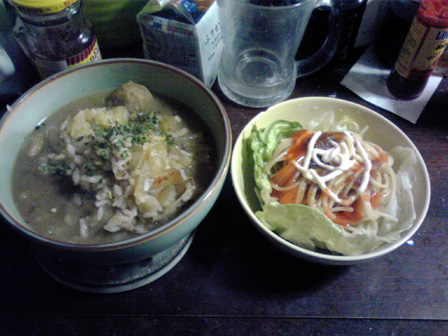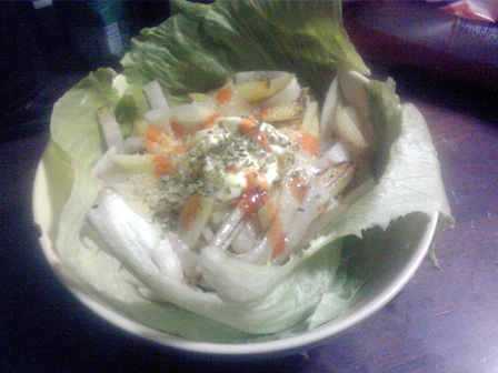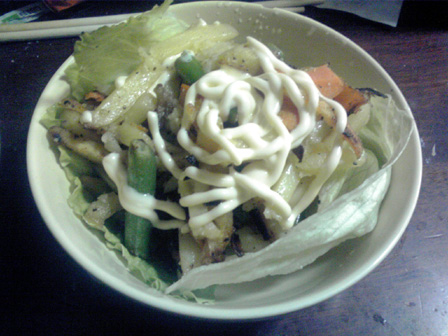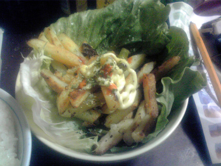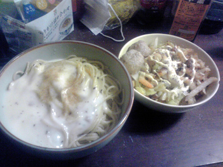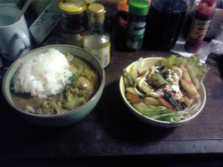 月曜更新です。 天候が著しく悪い昨今です。 ゲムマも近づいてきて告知と行きたいところですが、 ガラケーの中に最近食べた食事画像が溜まりに溜まったので、 今回は最近食べたものを紹介しつつよしなしことを書きます! まずは、ゲムマの時にふうかさんからいただいたマサラスパイシー。 一見辛い系かと思いきや、ちょっと変わったラーメン系です。 マサラ!! うちのじいちゃんもマサラ族出身のマサラの戦士で、 よく幼いワテクシを抱きながら狩りに使う槍を磨いていました。 その際によく歌ってたマサラの歌は忘れられません。 ごめんうそ 中身はこんな感じ。 海外麺で御馴染みのちぢれ麺!! そしてスープの素。 シンプルな構成です。 麺を煮込み、スープをお湯で溶かし、いざ、実食! んんん 普段あまり馴染みの無い味がする。 何風って言うんだろう。 持ってるボギャブラリーで表現できない味がした。 これがマサラか、砂漠のド真ん中で風に吹かれたような味がする。 美味い。 昨日、久々に七里フリマを覗いていつもの巨大ダイコンゲット。 七里フリマでは毎回八百屋の出展が複数あるけど、 このダイコンが桁違いにデカく人気。 しかもこれで100円。 あらゆるものにダイコンを入れるショーナンさんマストバイ。 そういえば、サーフビレッジのように七里も今回アクセサリ出展が 多めだった。 品を見た感じデザイン・価格共にどこもそこまで大差なかったけど、 入り口に近い方に人だかりができてた。接客とかアイテム配置もあるけど 配置アドバンテージが大きく見えたね。 ここから最近作った食事。 パスタスープ。 たぶん使わず半分残しておいたカップメンのスープの素で作った スープに茹でたパスタメンを放り込んだもの。 みんな声優アワード見た? いろいろと印象に残る回だったよね。 鈴村君ダブル受賞や功労賞に松来さん、 新人女優もフレッシュな水瀬いのりちゃんときて、 なんで富山敬賞に森久保さんなんやねん!!という突っ込み所も みせつつ、シナジーも映画化のあったちびまる子と、 だいたい納得な流れ。 松岡君はもうソードアート全盛の頃取ってたと思ってたから ノーマークだったけどネー。 ショーナンサラダ。 業務スーパーのフライドポテトを揚げて いくつかのお野菜をスライスして盛り付けたもの。 今回写真整理したらこれ系の自作サラダが大量に出てきたので ショーナンサラダとここに命名することとする! フライドポテトを主軸に野菜を盛るのはショーナンサラダ。 みんなも広めてね。 ショーナンサラダ2。 ゲムマ新作製造作業真っ盛りなこの時期だけど、 一通りものはできてて既に増やすだけの状況なんで、 秋を見越したアイディア出しやらやってるんですが、 トルパドゥール以来のオオギリ系いってみよかなと思っとります。 それとウサ金のシステムをいぢった二人協力ゲームも。 共に秋はウサギゲームになるかもデース。 グッズもいくつか作るかもなので、ウサギシリーズファンは 楽しみにしててくだサーイ。 カレーパスタ丼。 見ての通り。 そうそう、もうすぐ自前通販一時停止します。 入用の方は今週中を目処に注文おねげえしやす。 自前通販もぼちぼち注文があって、その都度手作業で こしらえてるのですが、それでも作るのが厄介な品は絶版に なったりで、メニューに並んでないものが増えてきました。 要望が多ければ材料買い込んでまた再販とかのワンチャンは あるんで、熱烈なファンメールに感想と希望を添えて ばっちこーいです。 みんなの一番お気に入りとか一番遊んでるタイトルなんかも 知りたいので、ぜひぜひ。 ショーナンサラダ3。 最近よく思うことが、作業の止めどきが分からない。 1つ1つの作業にはもちろん終わりがあって、 合間っていうものがしっかりあるにはあるんですが。 1つの作業が終わってる頃には、やりたい次の作業があって、 すぐさま新しいことに取り掛かってしまう。 面白いことを思いつくと手が止まらない。 そんなもので、どうにも旬の話題のコンテンツを 消費する間が無く(暇はあるのよ) 話題にはどうも2周3周遅れて触れる感じで、 最近ガンダムエイジ見てキャキャしてたほどです。 まー、とくに自分で作ってるものが旬に関係なく その時その時で自分が思いついたものを形にしてるんで、 作風に影響はないんすが、昨今は落語のアニメが始まったとかで、 ちょっとどよめいとります。 一昨年あたりから落語のゲーム作ろうと画策してたんすが、 なんかにわかにそのジャンルが盛り上がってしまうとやりづらい。 そんなんで、ショーナンの落語ゲーはみんなが忘れた頃に そそっと出します。そそっと。 カレー丼。 カレーパスタ丼。 カレー丼2。 この脅威のカレー率よ。 業務スーパーのカレールゥ袋、公称50皿分を ホントに50皿分ぐらい使い込むカレーマニアっぷりよ。 お世辞にも業務スーパーのルウ粉は味が薄くて美味いとは 言い難いのだけど、辛くする分にはマストなのよね。 ギンギンにパラメータ
