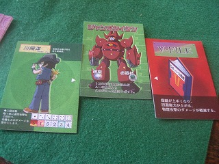 エヌ氏がコミケで入手したという、パイロットとロボットと武装を組み合わせてから戦う。強そうな人を狙いつつ漁夫の利を狙う、正統派マルチゲームでした。