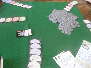 をしだやさんの500円ゲーム。イシス&オシリス的な、得点カードの奪い合い。すぐ終わるので、初参加者を迎えに行くまでの時間調整に。