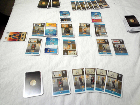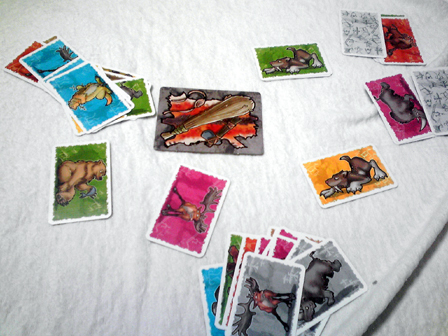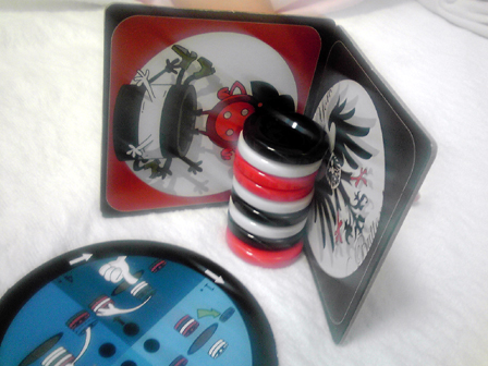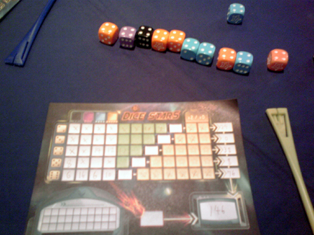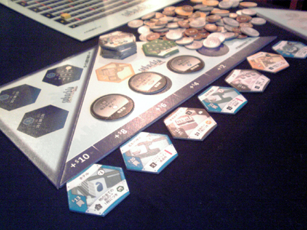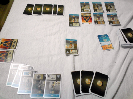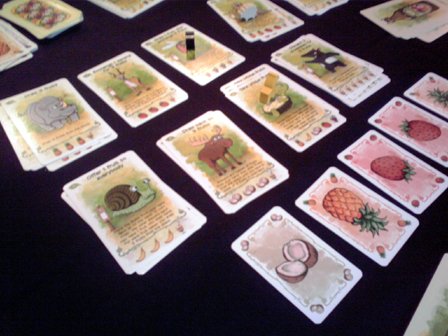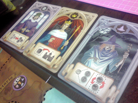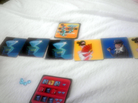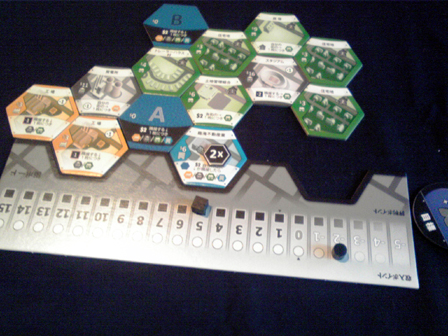 ボドゲの感想が溜まったので、一気に書いていこう。 まずは、六本木・しら石のボードゲーム会から ■ニンテンドースイッチ まずは人が集まるまで、ニンテンドースイッチを触らせてもらった。 スニッパーズ という協力してパズル仕掛けを解くゲームをプレイしたんだけど、 これがすこぶる面白く、毎度クリア方法が違うステージを あれこれ工夫して解いていくのが楽しい。しかも、 ちょっと強引な方法で解いたりもできるので、ガッツリ正答を探すというより ちょっとやんわりとお題に挑む感じがとても良い。 パズルゲームではエッガーランド以来の感動かも。 ネオジオのゲームもやらせてもらった。 一つのモニターを立てて二人で遊べる構成は殊の外良く、 携帯ゲーム機というより、ゲーセンの対戦台を持ち込む感じに近く感じた。 スイッチ思った以上にすごい!! おれもスイッチほしーよー、スイッチのためにお金貯めたいよおう。 ■ウボンゴ各種 初ウボンゴにしていろんなウボンゴやらせてもらいました。 ふつうのテトリスブロック並べるようなのと、 角が三角なやつと六角形の集合体のやつ。 中でも群を抜いて難しいのは角が三角のやつで、 どのブロックも形状がいやらしく、二面のうち片面が完成しても まったく安心できないのがおさろしや。 以前やった台湾タピオカミルクティーも似た感じのゲームだったけど、 比較的タピオカのほうがカンタンだったような気がする。 ウボンゴむずかしーっ 逆に熟練度が実感できるゲームなので、やりこむと楽しそう。 ■ダイススターズ 巾着からダイスを取ってロールし、好きなダイス目全部か色全部を取って、 シートに合計値を記入していくゲーム。 序盤はそれぞれ高得点が狙えそうな目や色を取っていくのだけど、 だんだん誰も取らない数字が残って行き、微妙に押し付けあいつつ、 終了条件のシート白マスが埋まった。 チャンス目の点数倍率変動などもあり、このシートがホントよくできてた。 なかなか良いダイスゲームだ。 ■シティビルダー ボードゲーム版シムシティともいうべき都市計画ゲーム。 建物の種類によって隣接すると弊害があったり相乗効果があったりするので、 長期的な計画性が問われる。 今回初プレイで、点数的に走ったものの、 最初に配布される自分だけの目的タイルを軽んじていたため、 最終ボーナスで玉砕。 点数配分もろもろよくできたゲームでした。 ルールの方もそんなに複雑ではないのも良し。 建物の効果が多いのでちょっと処理が煩雑になっていくのがやや難ぐらいか。 スライド式のお買い物システムは面白いので、今度何かに使いたいと思う。 ■フェイブルドフルーツ フリーゼのセットコレクション。1プレイごとにアクションが増え、 ゲームが進化していく。流行のレガシーシステムっぽい何か。 今回はステージ1のみプレイ。 最初はものすごーくシンプルなセットコレクションで テンポ良くゲームが進む。得点するごとにアクションが減っていくので、 ゲーム回数を重ねるとどんな盤面になるんだろう、という期待が強まる。 表記が全て翻訳されるであろう日本語版がもうすぐ出るとのことで、 これは確かに日本語版でやりたいかも。 結構面白かった。 続いて二人会 ■ポートロイヤル 最近よく回す、坊主めくりとお買い物で12点を目指すゲーム。 序盤に色指定で獲得金が増える船員を雇ったら、その色の船全く取れず。負け。 2ゲーム目では武力に走ったものの、相手の提督効果に押されきって負け。 うむむ、勝てない。 ゲーム自体は、お金の使いどころや坊主めくりをどこまでやるかなど、 決断どころ満載で、一概に運ゲーとも言えないところが良い。 拡張買うかすげえ迷う。 ■マンモスハンター 動物か色が3つ揃ったら真ん中のこんぼうを叩き獲得する。 更に、獲得したカードの山も、次から要素の1つとなり獲得対象となるため、 最後まで油断なら無い。 場にカードが増えれば同時に揃う要素もあるため なにを狙うかによって大きく逆転することがままある。 アクションで早取りゲームは結構ニガテなのだが、これは最後の方まで 勝負できて良いと思った。 逆転要素とは何かを考えさせられるゲームだ。 ■ブラアウリア1356 拙作。盤面的な先読みと相手の行動の両方を読まなくてはならない。 今回は相手に行動を読まれアクションのバッティングで大きく足止めをくらい、 一方的に負けてしまった。 自分が作ったゲームながら難しい。 短時間ゲーマーズゲームやぞ。 ■オキヤ 定番のオキヤ。 2勝1敗!! あいかわらず手軽で良いゲームである。 ■ボタンアップ オキヤの兄弟分ともいえる、マンカラ風の短時間ゲーム。 回転重ねする動作が慣れない感覚なので 序盤はなんとなくで動かしがち。 慣れてくると上手く相手より上を取れそう。 独特な動作と独特なコンポーネントで一風変わったプレイ感だ。 ■ブルーライオン 男怪盗と女怪盗に分かれて、それぞれのカードを動かして 特定の配列にす