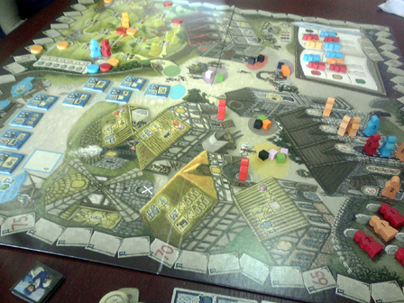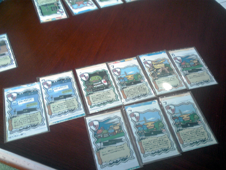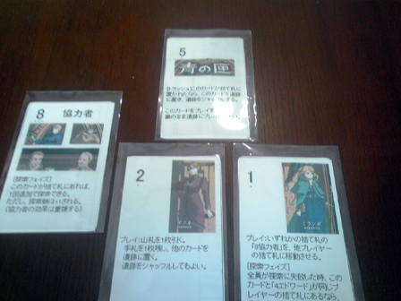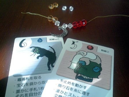久々にぷうびっつ夫妻のお宅にお邪魔しました。 しばらく見ぬ間にお子さんもだいぶ大きくなり、 その成長具合を拝見しながらの 乙なゲーム会となりましたッ。 ■村の人生 まずはでかいゲームからのスタート。 ラウンド毎に回数制限があるアクションを先取りする 半分ワーカープレイスなゲーム。 点数源が多義に渡り、その中でもワーカーが寿命で 名鑑に載っていくことで得点する部分が特徴的。 はじめ聞いたときは何から手を付けたものかと思ったけど、 1ラウンド目が終わる頃にはばっちり見通しが立ち、 かなり濃厚なアクションの取り合いが楽しめました。 アクション選択時に物資1つ取るというワンクッション置くだけで ここまで悩ましくなるとは、これはなかなかシビレルユーロ。 得点トラックを指差し、大好きな数字を発見するお子の雄姿!! 果ては数学者か、はたまたマーケティングコンサルトか!! 午前中いっぱい村の人生だったので小休止。 北極ラーメン中本のカップメン。 本場中本に比べるとだいぶマイルドながらほどほどに辛美味い。 ■自作ロスレガ それからグラム氏自作のロスレガをさくっと遊ぶ。 写真後者のウサギのロストレガシーは既に印刷所に入稿済み みたいなのでもーすぐ公開かも? なんか予約取らないとか不穏なこと言ってたので ゲムマ当日分のみになるっぽ。 取り扱いはイリクンデぷうびっつスペースなので要注意。 嬉々としてアイパッドを自在に使いこなすお子!! お気に入りの曲を絶妙なインジゲーター操作で華麗にローテ。 生まれながらにしてアップル信者かっ!! そういえばウインドウズ信者ってもう死語なムードっすよねっっっ。 ■ぷうびっつ試作ゲーム 前者は視線の要素を取り入れたインディアンポーカー調のゲーム。 後者は紙をちぎってゾーンに当てはめるお絵かき+ちぎりゲーム。 いずれも数字的な呪縛から解かれた感覚を利用した内容が 印象的で、なるほど、子の親になるってのはこういうことか と 勝手に納得してしまった。このセンスは凄い。 ゲムマに間に合うか!? ■ドワーフのネックレス 手札2枚のうち1枚を使用して宝石を取ったり ネックレスに宝石をはめたりするゲーム。 ついついコンポーネント構成に目が行ってしまう。 ビーズや器具を取り揃えつつ、ゲームデザインで カード枚数をここまでに抑える。見事だわー。 カード1枚にいくつかの効果をブッこんでるけど、 1つ1つが簡素で拗れてないので見やすい。 ナインガチだわー。 そして、アンパンマンパズルを華麗に組立てるお子!! だいたい1~2才でトーマス派かアンパンマン派に分かれるけど アンパンマンはほぼほぼ鉄板。 丸みか?丸みなのかっ?? ■飛行船の時代 びっくりするほどスピーディーな飛行船構築ゲーム。 そのスピーディーな理由は他者が置いたパーツの部位と 同じ部位のパーツを全員出さなくてはいけないマストルール なんだけど、いや早い いやはや早い 飛行船は一日にして成る。 まじで3~4巡ぐらいで1ラウンド終わることがある。 ■フリートコマンダー グラム帝国軍はカワサキ星系へと侵攻し そこで共和国の艦隊と遭遇。 果たして戦いの行方はいかに 2戦やった内容はフリコマ特集で掲載予定。 おさんぽより帰還したお子は数字を求める。 あの本を取り この本を取り その本を取り 中からひたすら数字を探す!! そして気づいてしまった、ページ数という ページの数だけある数字に!!! 興奮が止まらないっ ■ひらがなトランプ 場札と手札を組み合わせて言葉を作るゲーム。 なんとなく意味がある語が並べばそれでOKという感じに それぞれ天衣無縫に言葉を紡ぐため なにやら昭和大正の怪盗じみた脅迫状になる。 江戸川乱歩臭がする。 ■ナンジャモンジャ 名前をつけるゲーム。 名前をつけるといえばディクシットもだけど、 こっちはもっともっとカジュアル。パッと名づけてサクサク進むカンジ。 なんとなく画と微妙にかけ離れた唐突なネーミングが笑いを誘う気がする。 すごろくやとかドンキで推してるだけあってか、 すっげ分かりやすいゲームで、個人のセンスが如実に現れるのが楽しい。 誕生日直前だったのでケーキいただいちゃいましたー!! めちゃうま!! まじありがとうございますっ!!! ■そっとおやすみ 出ました、帽子を揃えるゲームというタテマエがありつつ、 その本質は早抜けアクションゲーム。そっとおやすみ!! 今回3人でプレイしたので、ちょっと錬度が上がると 容易に全域を見渡せるため判定が難しい僅差閉じが連発。 5人ぐらいが適正かもしれない。 ■ダンジョンオブマンダムエイト 最後はマンダム。鉄板のチキンレースゲー。 今回は一度もダンジョン制覇ならずでしたー。 ここで解散。 最後はお子にバイバイと手を振ったらギャン泣きされました。 そんなにこのお兄さんとお別れがさみしいなら いつでもまた来るぜ!! そんなこんなで久々の宅会でごさいましたー。