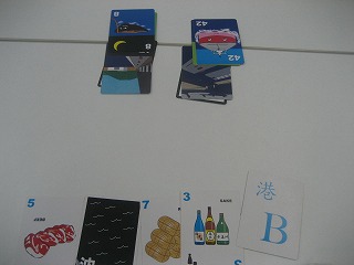 新ボードゲーム党さんの、2012秋作品。各自選んだ港に荷物を送り、合計が船の積載量以下なら出荷成功。他人の荷物で見えるのは個数だけで、駆け引きが難しい。