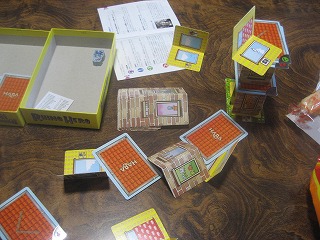 HABAの積み上げドイツゲーム。初級と上級で1回ずつプレイ、どちらもあまり積み上がらず。