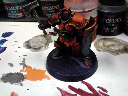 各所にシタデルレイヤーカラーで明るい赤を塗り、