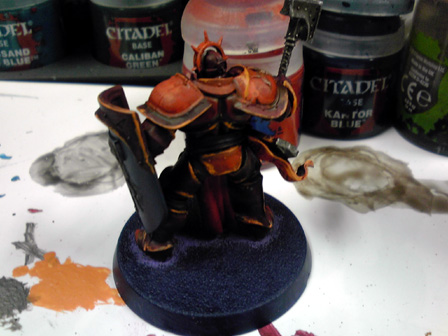 シタデルベースカラーで濃い赤を下地に塗り、