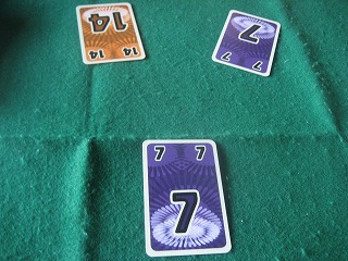 フリーゼ作、2016年のドイツゲーム。手番ごとに数字比べ勝負が入り、勝たないと手札が減らない。変わったプレイ感でした。