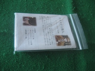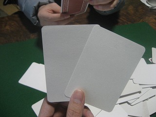 Kino.Qさんの、2017秋の新作。紙質の違うカードが2枚ずつ入っている。神経衰弱は無理そうなのでジジ抜きをプレイ。引くカードを触って選べるハウスルールでプレイ、最後には手触りまで似た紙が残り白熱。