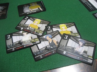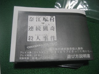 オインクゲームズさんの初期作。数値が高いと犯人、ということで連想してプレイ。あちらは互いの思惑を推理、こちらは自動的に起こった事件を推理。