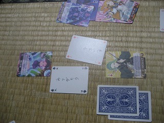 勝手に作成、おいしいたにし土屋さんのカードゲームのロストレガシー化。脱落多めで、翁と屋敷は子供を、お化けは子供と犬を、犬は翁を脱落させる。調整中。