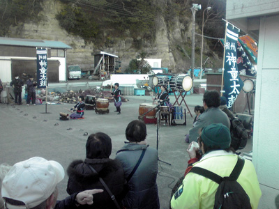 甘酒コーナーの隣では、これまた恒例の 相州神童太鼓の皆さんによる、