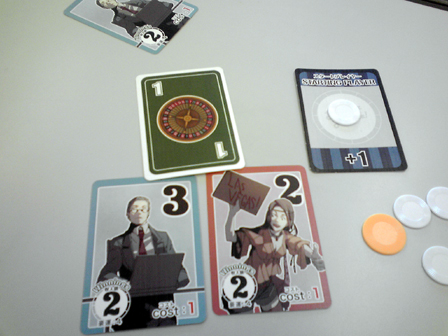 久しぶりにプレイ。カードを出し合って数字が1番か2番目に大きければ