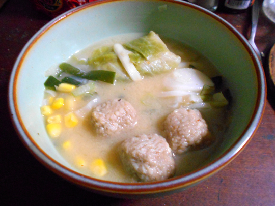 完全食味噌汁 ショーナンミソスープ 2020年ずっと検証してた究極の味噌汁レシピがまとまったので クックパッドに投稿しました。 クックパッドデビューです! -デザイナーズノート- これは、業務スーパーの材料で美味しい味噌汁を作るという 一汁一菜生活を彩る軽い目標ではじまり、次第に志が高くなり 米・野菜・オカズ・汁を統合した完全食足る味噌汁の創作が 目標となって誕生しました。 ●あらゆる手間の簡略化から着手。 すべて長期保存が効く業務スーパーの冷凍食材を採用し、 ほぼほぼ煮込むだけで完成する調理行程にまとめた。 結果、食器はどんぶり1つ 器具は小鍋のみ 他、時間ロスが少なく並行してできるレンチン2分のみで完結している。 調理時間は要領よく行けば10分を大きく下回る。 ●ベースの味噌を決めに一番時間をかけた。 コウジ入り 赤味噌 出し入り といろいろ試してみたが、 正直味噌は分量で味は激変してしまう、決定稿を決めるというのは 難しい。 思い悩むある日、料亭で和食をいただく機会があったため、 味噌汁に集中して味わってきた。これがなんとも濃くなく薄すぎない クセの無い味だった。 これだ! と思った。 そこで、一番クセがなくなかなか飽きが来ない銘柄を模索した。 それが 新マルコメ君こし だ。 これは非常にクセが少なく好き嫌いが別れにくい味だった。 悪く言えば個性が無く味わう衝撃が無い。 だが、それは具材に干渉しにくい味ともいえる。 具材と喧嘩しない無個性の味噌、それが新マルコメ君こしという選択だ。 ●ベース具材 季節によって旬の具材というものがあるが、 一年を通して飲み続けられる選択を優先した。 インゲン・そらまめ・青ネギ・ピーマン・カニカマ さまざまな食材を試したが、味噌汁とは存外何でも合う。 余りの懐の深さにしばらく迷走してしまった。 ある日、ひとつの突破口が示される。 カット玉ねぎ を 刻み玉ねぎ に替えた時、電撃が走った。 みじん切りにした玉ねぎはすこぶる食感が良いのだ。 カット玉ねぎは具材だが、みじん玉ねぎは不思議と汁の 果汁のようなものになる。 これは噛む汁とも言える。 人はよく噛むと満足感が高まる。 それから数カ月、偶然多くの味噌ラーメンに コーンが入ってることに気づく。 もしやと思い、味噌汁に加えてみると、これがすこぶる上手い。 刻み玉ねぎより一段階大きい食感だ。 まさに音階のドレミがそろった瞬間であり、 これが全てのベースとなる具材の1つとすることに決した。 余談ではあるが、冷凍コーンはコーン汁が少ないため 味噌と喧嘩をしない。意外なほどマッチした食材だったのだ。 ●コストパフォーマンスとしての副食 オカズ要素の模索が始まった。 これは早くから冷凍にくだんごに目を付けていたが、 冷凍餃子各種・冷凍たこ焼き・冷凍ちくわ・冷凍つくね・冷凍じゃが などが検討された。だが、値段と満足度の観点から にくだんごほどバランスが良いものがなく、 味噌との相性はどれも抜群であったが採用には至らなかった。 次点でつくねだが、季節によって変えるのもいいだろう。 ●メインディッシュを添えて 1つの食事の中には、やはり目玉というものがある。 ハンバーグなどの肉類が妥当であるが、 味噌汁に合う・手間がかからない・保存が効く冷凍ものに限る となると、選択肢は狭まる。 業務スーパーで目に付き 白羽の矢が当たったのが 冷凍ロールキャベツ だった。 実はキャベツも具材として良いと思っていたのだが、 冷凍キャベツというものが無い、そのキャベツを補えて、 肉を内蔵し具材の中のメインを張れるという、あらゆる 要素を一発で解決してしまったのがロールキャベツなのである。 しかし、試作で何度か生煮えであったため、 並行してレンチンする行程をこのために加えるに至った。 サブ案として冷凍かきあげもあったが、これは調理が予想以上に 面倒なため採用されなかった。 ●米はそこにある 最終的に米要素はモチで解決する方句で調整が進んだが、 これもいくつかの問題を抱えていた。 他の冷凍食品は初回の開封以降は手間がほぼ無い、 袋から小鍋に入れるだけだ。 だが、モチはそうはいかない。1つ1つ包装されてるため 開封が面倒なのである。しかも量の調整が個数単位なのも 微妙なところである。 そこである日業務スーパーで出会ったのが トック である。 コストや量も悪くなく、まさに救世主的食材で、 これの追加によって米要素は補われ完全食味噌汁は完成に至った。 ●ニラの魅力 最後まで正式採用を迷ったのがニラである。 好き嫌いが分かれる、なくても完成度にはそこまで関与しない。 では、なぜニラは採用されたのか? それは歯に挟まるからである。 食べ物が歯に挟まるというのは マイナスイメージかもしれない、しかし、それは余韻でもある。 1回の食事とは余韻もあって完全といえるのではないか。 それがニラの採用理由である。 こんかい示したレシピは、あくまでオールシーズン用の 基本的