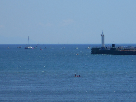 でもセーリング競技は陸から結構離れてやるから