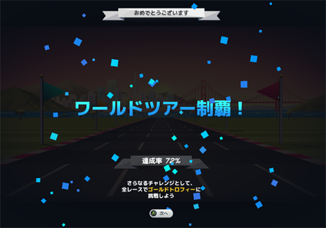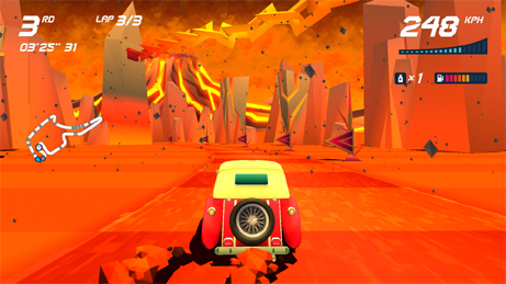 ド直球のカーレーシング、もうひたすら前の車を抜いて行く快感に特化した内容。