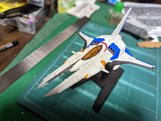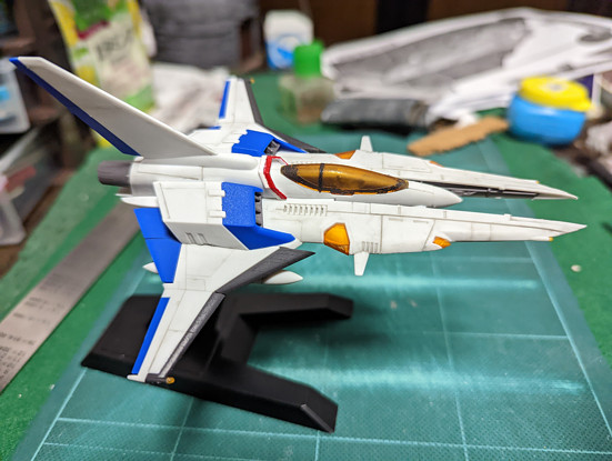 キャノピーの縁の黒部分とキャノピー後ろの赤ラインだけ部分塗装して、