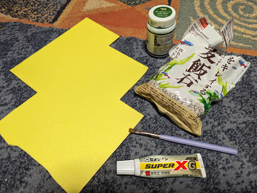 材料はスチロール版、熱帯魚用の石、ボンド/セメダイン、塗装道具など