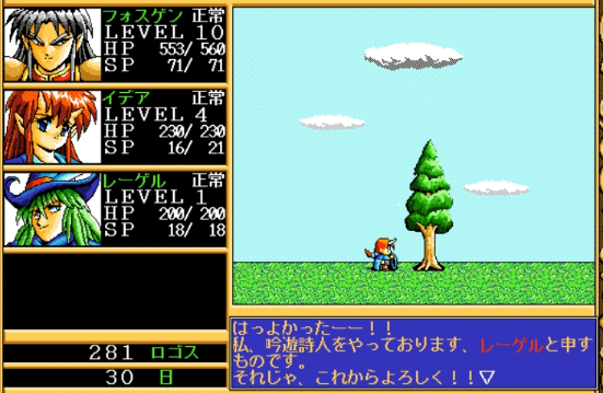 街の奥の大きな木の下に立つ詩人レーゲルを仲間にした。