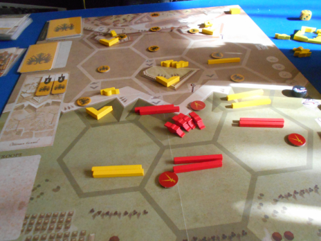 戦闘解決では1~3の兵力カードを自由に選択して出すところが最も悩ましく、