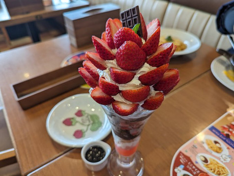 病院の近くのココスで特大イチゴパフェ食った写真。
