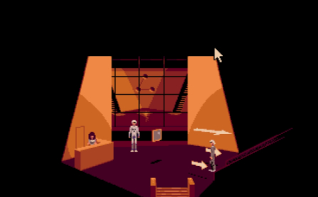 テレビでガードマンの気を逸らせ、ロビーの女の隙を窺い