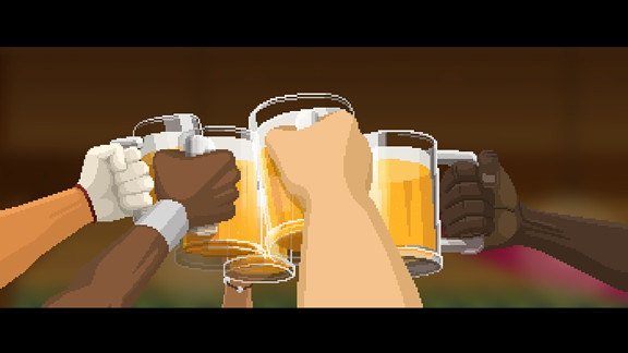 デモシーンを16ビットカラーのイラストライクなドットで仕上げており、