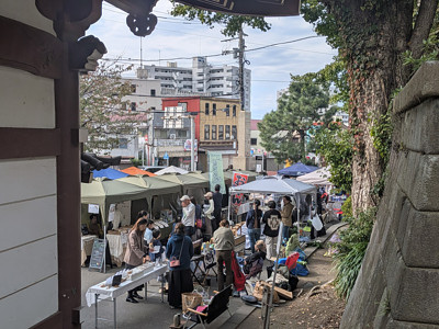 龍口寺の境内でフリマ的な出展や体験会などの催。
