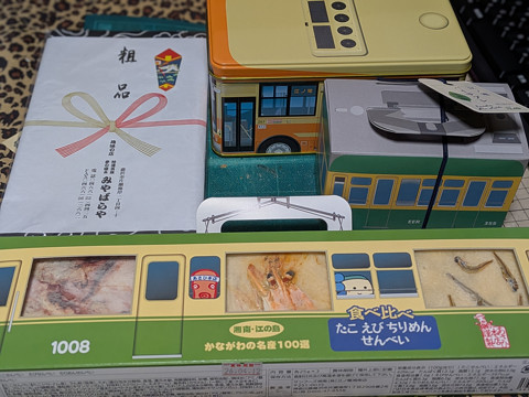 手ぬぐいと江ノ電お菓子セット貰いました。