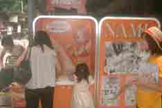 コミケの代わりにマッタリと満喫すべくイベントのはずでしたが、 死 ぬ ほ ど 疲 れ や が り ま し た まだコミケ行ってた方が良かったわ、天気も曇りだったし。 死ぬほど疲れたのにもいろいろと理由がありまして、 案内通りにウォークラリーを進めれば大したことはありません。 ありえないぐらい単独でとんでもなくオバカな事をやらかしました。 以下、順路に沿って記念撮影。 ![]() 全ての始まり江ノ電江ノ島駅、 スタンプはフランキーでした。 CV矢尾一樹、燃料がコーラとか、私の大好きな要素満載の ベストオブマイワンピースキャラ。 スタンプスペースの横には原作の名シーンが貼り付けられています。 並ぶ客層は少年少女・親子連れ、まったくもって普通のウォークラリーの風景。 ![]() 次に藤沢、スタンプはサンジです。 並ぶ客層は江ノ島駅と同じ・・・と思いきや、どう見ても腐女子っぽいのが 2~3組いました。 スタンプ台紙を4~5枚も一人でせしめていたたくましいお嬢さんも いらっしゃいました。有明の巣にカエレ ![]() そして江ノ電の終点から終点へ鎌倉駅に到着、 ここのスタンプはゾロ。 鎌倉駅の改札内にあるお惣菜屋は穴場です、 1個100円のチキンやらお寿司やらアイスは是非ここで ![]() そしていよいよ電車移動が終わり鎌倉の町中を散策、 最初の目標は本覚寺。 若干分かり辛い場所にありますが、 駅からすぐに付きます。 ここのスタンプはウソップ。 このあたりから同業者臭いカメラマンが目に付きます、 どこのサイトの管理人なのやら。 ![]() 本覚寺からやや逆方向に戻り、鎌倉のメインストリートである小町通へ。 入り口付近のジブリショップや各種飲食店が目立ちますが、 地元民的なオススメは 昔ながらの雰囲気を守り続けるおもちゃ屋ちょっぺー と 藤沢の本店からチェーン化しているお好み焼き食い放題・想太郎。 鎌倉の飲食店は クールになってセレクトが吉。 さて、ここで最初のやらかし。 スタンプスペースの場所が小町通内に発見できず、ながーい通りを一週半往復 してしまいました。 土地勘がないとイマイチわからんと思いますが、 あの通りを往復するのはかなりダルいです。 ここで大幅に体力減少。 人混みに隠れていたチョッパーのスタンプをようやく発見する。 ![]() ゴールを抜かすと後2つ、そこそこ快調にスタンプを埋めて行く中、 鎌倉で二番目に凄い名所の八幡宮へと到着。 ロビンのスタンプは休憩所付近にあるも、 それに気づかず宝物殿の前まで階段を駆け上がり、 更に大幅に体力減少。 このあたりからリアルロールプレイングは やるもんじゃないなと結論付く。 リアルFPSは楽しいですよ ええ サバゲ。 ちなみに宝物殿の前のお土産屋には巫女さん店員が常駐してます。 この日は中古品でしたが、たまに若い子もいます。 ![]() 7つ目の最大の難所銭洗弁財天に挑む刻が来ました。 ここだけ異常に駅から離れています。 むしろ八幡宮も若干駅から遠いいので、ここは駅の起点に戻らず、 地図的に直に銭洗弁天を目指すべく裏道を使って攻略・・・ そ う 思 っ た の が 大 間 違 い で し た 蛇のように左右に蛇行する長く途方も無い平道、 「落盤注意」とか立て看板があったりする死ぬほど辛く長い坂が2つ、 もはや道では無い蜀の国の山道ばりの絶壁である最難所の弁財天の裏山、 長い道では既にこの企画に後悔。 坂道では販売機を発見するごとに水分補給。 裏山ではついにHP0でダウン、岩場で小30分ほど倒れ込む。 おかしい、コミケに行かなかったはずなのに・・・ どうしてこんなに足が痛いんだろう ウォークラリーってこんなにハードなのか 案内通り一度駅に戻るべきだったか・・・ とかもういろいろと思うところあるうちに、やっと弁財天到達。 入り口はトンネルになってる洒落た造り。 タルト婆が出てきそうな空間です、タルト婆って何?って人は レンタル屋で 雲のように風のように というアニメを借りて下さい、 たまにジブリコーナーにあります。 ちなみに写真に写ってるスタンプを押してる幼女が俺です。 コレ書いてるのはゴーストライターの深町君です。 ![]() そして、疲労で千鳥足になりつつもラストの由比ガ浜へ、 ここの景品交換所でラストのルフィースタンプです。 由比ガ浜の海の家地帯に展開されている催物なので、 ここで限定メニューやら物品やら展示物があります。 でっかいスペースかと思いきや、スペースは1藤沢シータぐらいでした。せめぇー 以下その様子 サンジ フランキー ロビン ゾロ チョッパー ウソップ ルフィー 船 そんなこんなな初のスタンプラリーですが、もう二度とやりません。 大変たのしうございました。
